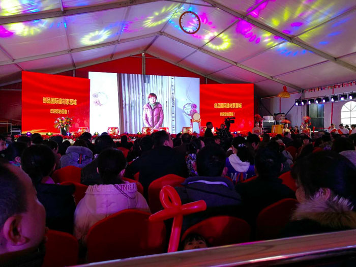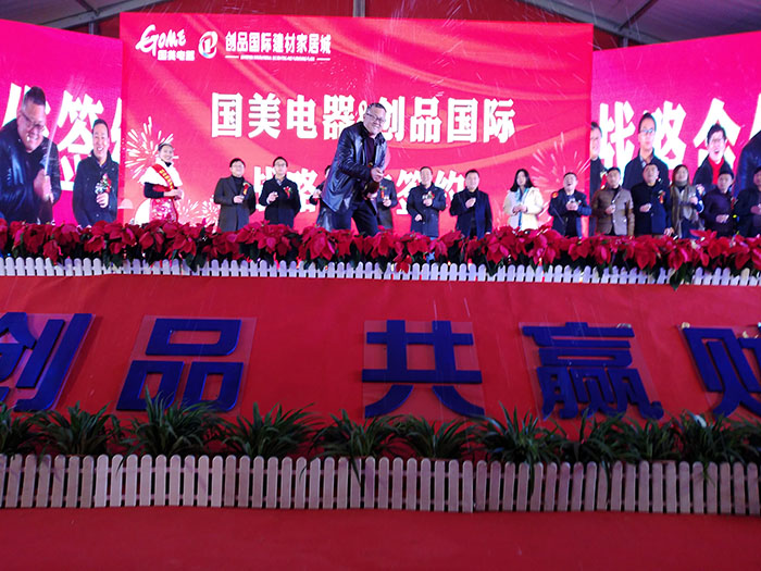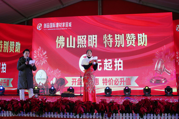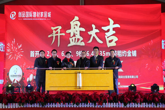 開盤儀式隨著創品國際董事長陳春平先生敲響銅鑼聲中宣布創品國際建材家居城正式開盤。