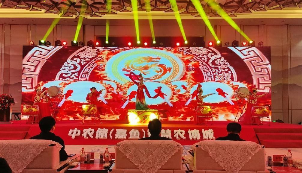 以鼓會友,鼓動未來。中農(nóng)儲·嘉魚智慧農(nóng)博城農(nóng)副產(chǎn)品交易中心項目推介會在磅礴大氣的《龍鼓舞表演》拉開帷幕。